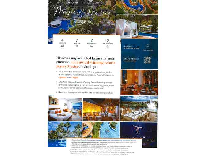 • A luxurious two-bedroom suite with a private plunge pool in Nuevo Vallarta, Riviera Maya, Acapulco, or Puerto Penasco for 4 guests over 7 nights
