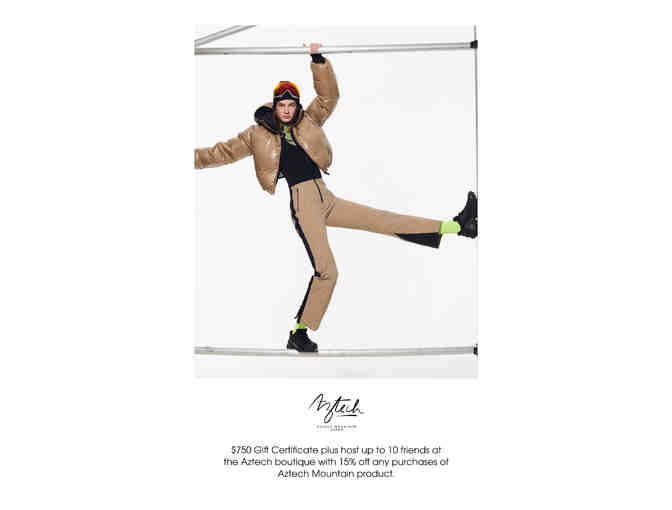 $750 Gift Certificate. Host up to 10 friends at Aztech Boutique and enjoy a 15% discount on any Aztech Mountain product purchase.