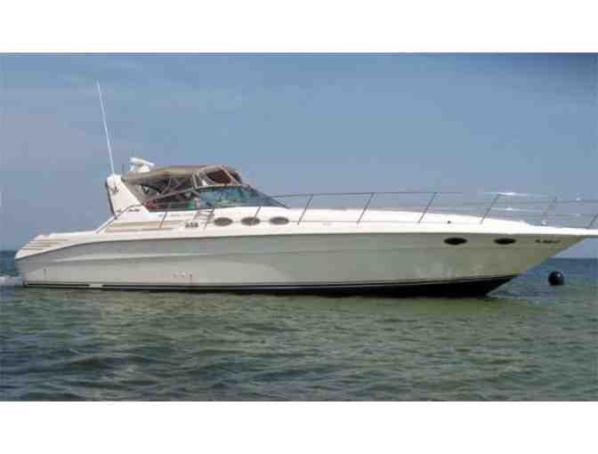 Enjoy a day in a beautiful 40ft Sea Ray Sundancer Cruiser on the bay. We'll host a party of 8 folks and greet your crew with a nice bottle (or 2) of champagne (or other drinks!).