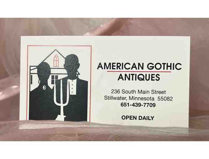 Use this certificate for your next antiques shopping excursion. American Gothic Antiques is located at 236 South Main St., in downtown Stillwater, MN.
