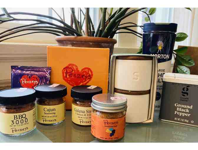 Up your spice game! This item containts a Penzey mini Grill & Broil spice box with 1/4 cup jar each of Cajun Seasoning, BBQ 3000, Galena Street Rub and Penzeys Seasoned Salt. Also includes cards with handy tips for each spice. Salt and pepper wells for easy access with kosher salt and ground black pepper. All wrapped up in a handmade reusable tote.
