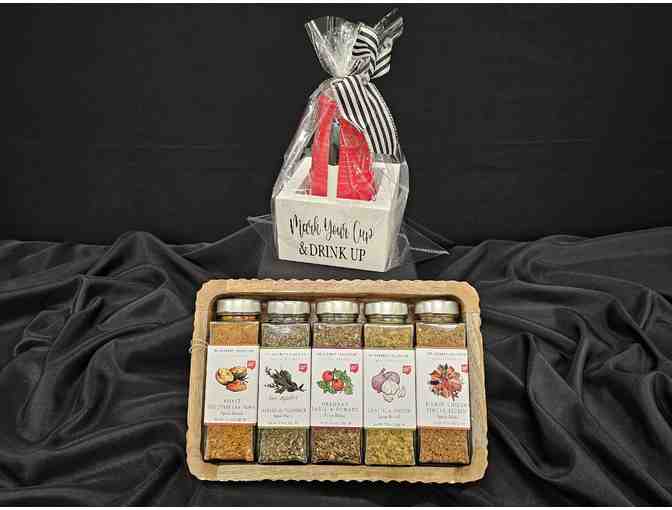 A few of Debbie's Favorite things- The Gourmet Collection spice blends basket: Roast Vegetables & Fries, Herbes de Provence, Oregano Basil & Tomato, Garlic & Onion, and Kickin' Chicken Finger Lickin'. Mark your cups holder includes a marker and red solo cups.