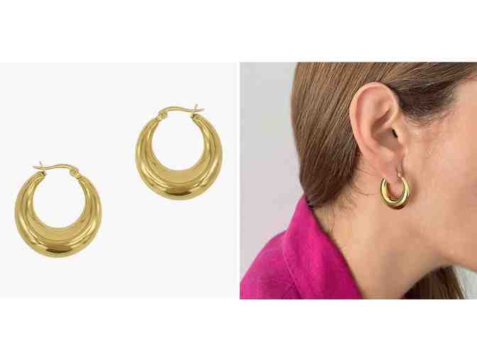 Gold Domed Hoop Earrings Everyday hoop earrings are upgraded with a domed shape and 14-karat gold plating.