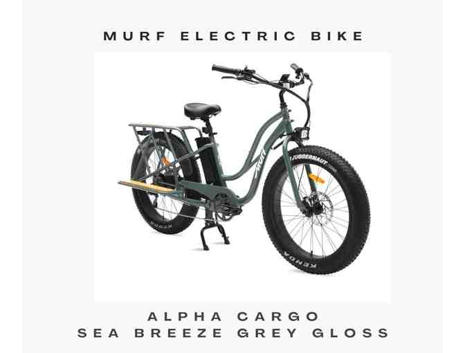 Cruise Around Town On 'The Alpha Cargo' Murf Electric Bike, Color: Seabreeze Grey Gloss. SPECIFICATIONS: 20 Mph Top Speed 750 Watt Motor (Nominal Power) Five-Level Pedal Assist Thumb Throttle Integrated Super Bright Off-Road Headlight. 18W 1080 Lumens 52-Volt, 20 Amp-Hour Battery 26" X 4" Fat Tire Hydraulic Disk Brakes 7 Speed Shimano Gear System Roughly 80 Pounds Class 2 DIMENSIONS: Stepover Height: 19" Wheelbase: 50.5" Overall Length: 80.5" Seat Height: 34-40" Handlebar Height: 44-48