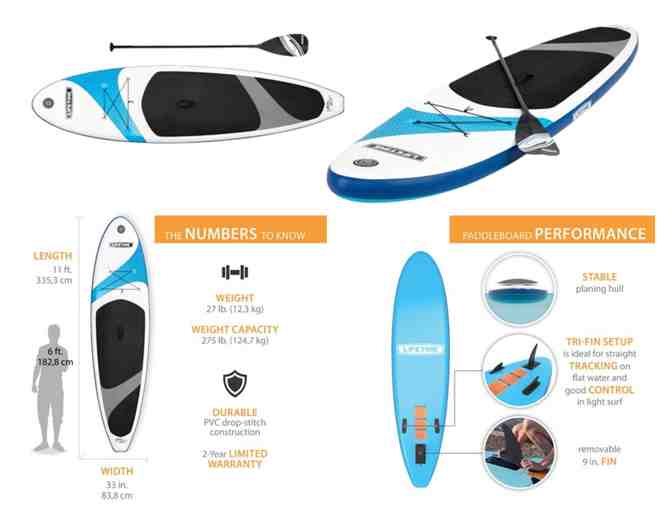 Cruise on a lake or in the ocean with this Lifetime Vista110- Inflatable Stand-Up Paddleboard. Designed with stability and performance in mind, is durable and lightweight, makes this a great gift from entry level to intermediate paddlers or for yourself. Includes its very own backpack for easy storage and transportation. A paddle, pump, removable fin, and repair kit are also included.