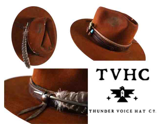 Pumpkin - Arrowhead Crease. *Distressed Turquoise, Cedar, Baby's Breathe, & Buffalo Coin. Reclaimed Resistol 8X. Vintage Blanket. Hat sourced from AZ. Leather sourced from NM.