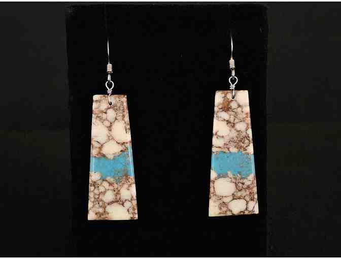 Beautiful slab earrings that include a vein of blue turquoise in the middle.
