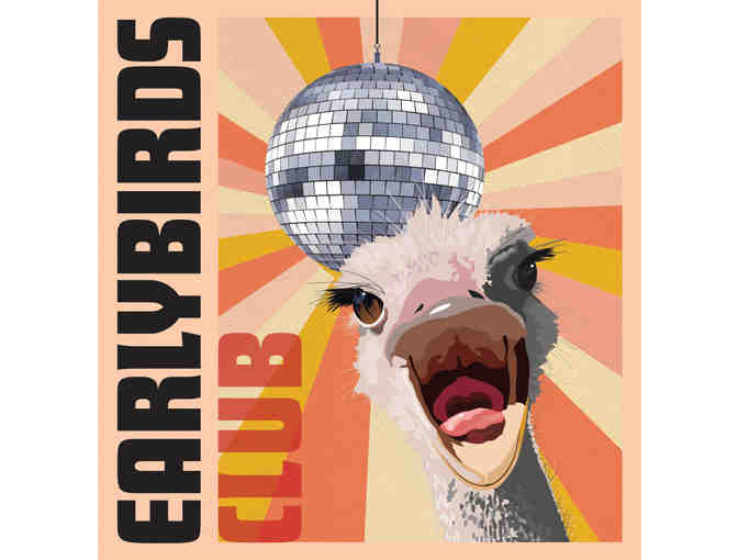 Good only for the Earlybirds Club dance party happening on Saturday, May 4, 2024 at Color Club in Chicago. Auction bids are final. No returns, exchanges, or refunds. This item will be sent to the winner within 3 weeks after auction concludes.