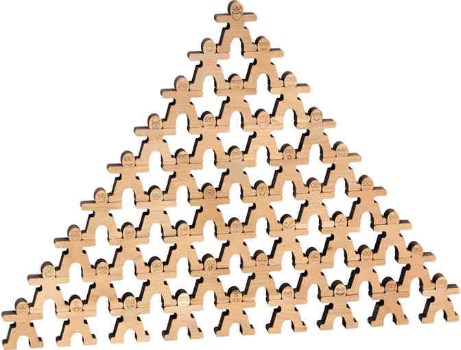 Right side up, upside down, or sideways! There are so many ways to build up the Stacking Dudes that you'll never run out of options. The set includes 45 "Dudes" with fun expressions (assortment of expressions varies). Each piece is 2.25" wide, 2.75" tall, and 0.75" thick. Crafted from solid cherry. No finishes are applied; graphics engraved in the wood. Packaged in a reusable corrugated storage box.