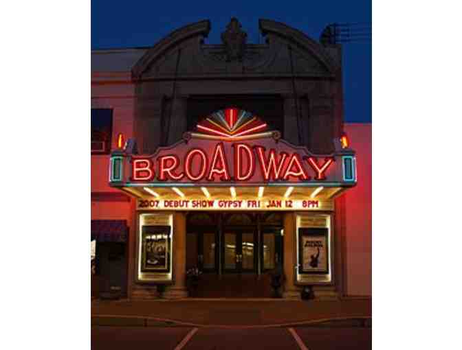 A gift certificate good for two tickets to one of Broadway Theatre's Main Stage theatrical productions during their exciting 2024 or 2025 seasons. Upcoming 2024 Main Stage shows include: Ragtime the Musical, 9 to 5, The Musical, The Prom and Kinky Boots. The 2025 Main Stage productions have not yet been named. The Theatre is located in Pitman, NJ. Donated by the Broadway Theatre of Pitman