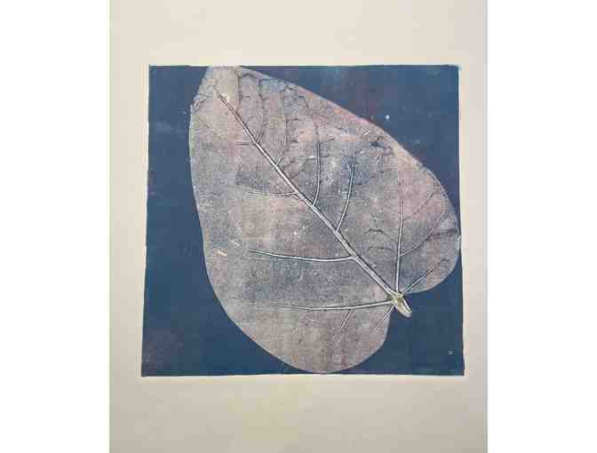 "Catalpa Leaf on Blue" 15" x 15", (unframed)