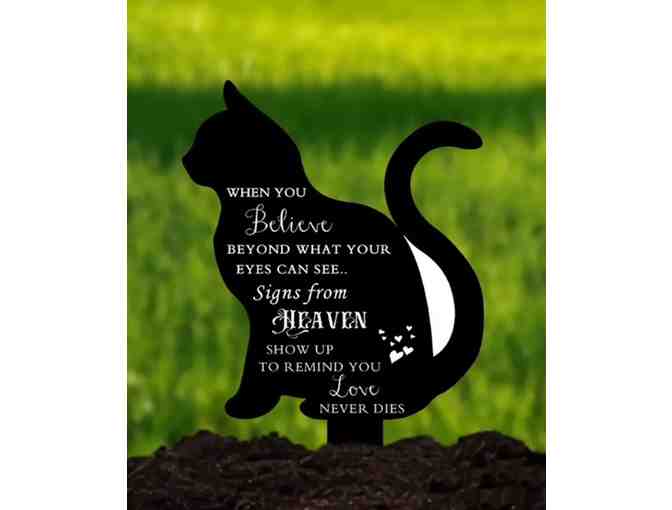 Lovely cat memorial for indoor plant or your garden. 4.7" wide by 7.87" tall. "When you believe beyond what your eyes can see.. Signs from Heaven show up to remind you love never dies"
