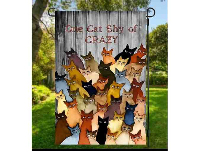 Double-sided polyester / burlap-like garden flag. 18" x 12". No flag stand included.