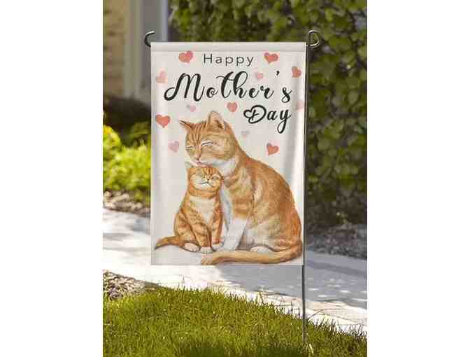 Double-sided polyester garden flag. 18" x 12". No flag stand included.