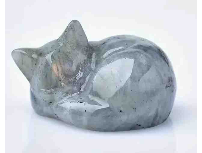 Carved Stone Sleeping Cat - Labradorite