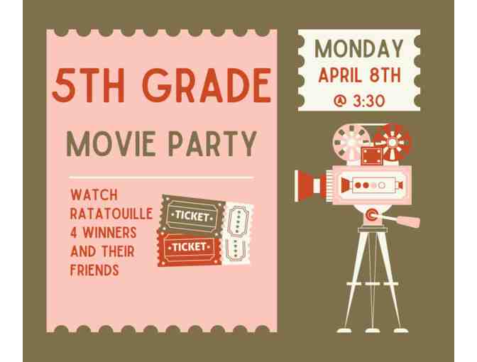 5th Grade Movie Party Monday 4/8 @ 3:30