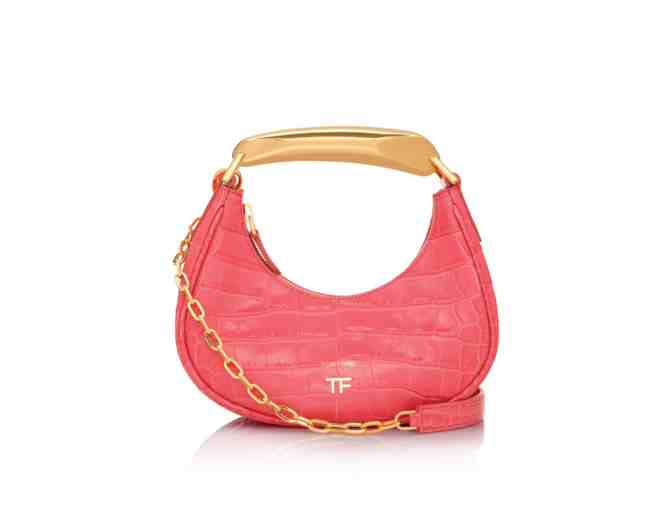 TOM FORD Mini Bianca Croc Embossed Top Handle Bag (Pink). TOM FORD's Bianca bag is characterised by a sculptural gold-tone handle. Made in Italy from crocodile-embossed leather, it has a croissant-inspired silhouette with a compact design.