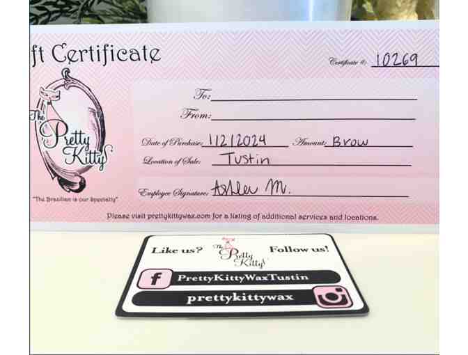 An eyebrow package from the Pretty Kitty located in Tustin. At The Pretty Kitty, we do things a little differently than most waxing establishments. Many people are surprised & sometimes skeptical to learn that we use soft wax instead of hard wax, which is a more common and easier to use wax for the Brazilian. We use a high quality soft Italian cream wax by BellaKisse, designed for sensitive skin. Using a soft wax for a full Brazilian requires skill if it is to be done well. https://prettykittywax.com/
