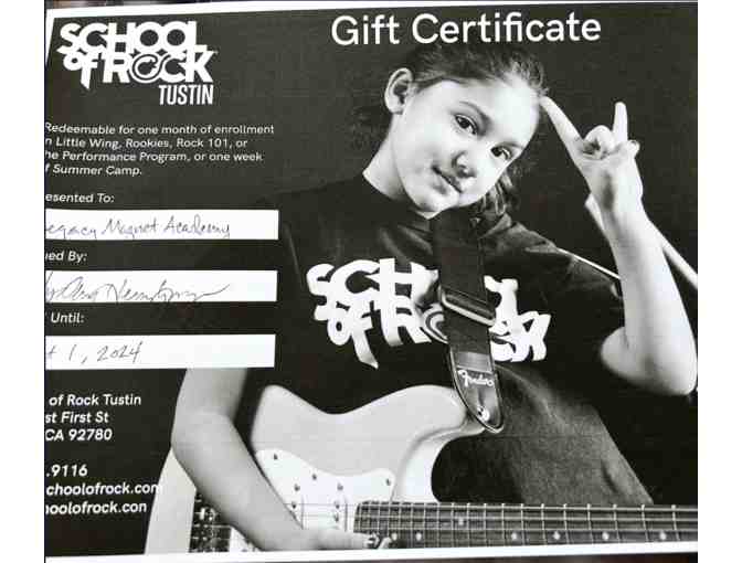 1 month tuition or 1 week of camp ($549 Value). School of Rock Tustin delivers a revolutionary music program to students from Tustin and surrounding communities such as Santa Ana, Huntington Beach, Irvine, and Anaheim. Our school is proud to offer lessons in guitar, drums, keyboard, vocals, and more taught by practicing, passionate musicians. https://www.schoolofrock.com/locations/tustin