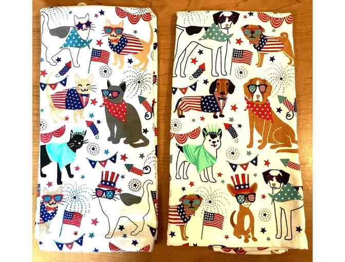 Celebrate the upcoming holidays with this cute pair of dish towels. One with cat design and one with dog design. Nice quality 100 percent cotton dual-sided 2 in1 that reverses to terry loops.