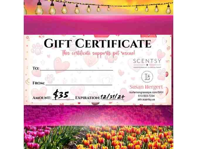 $35 Gift Certificate for Scentsy or Lemongrass Spa