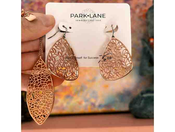 Park Lane, Rose Gold Filigree Pendant and Earring