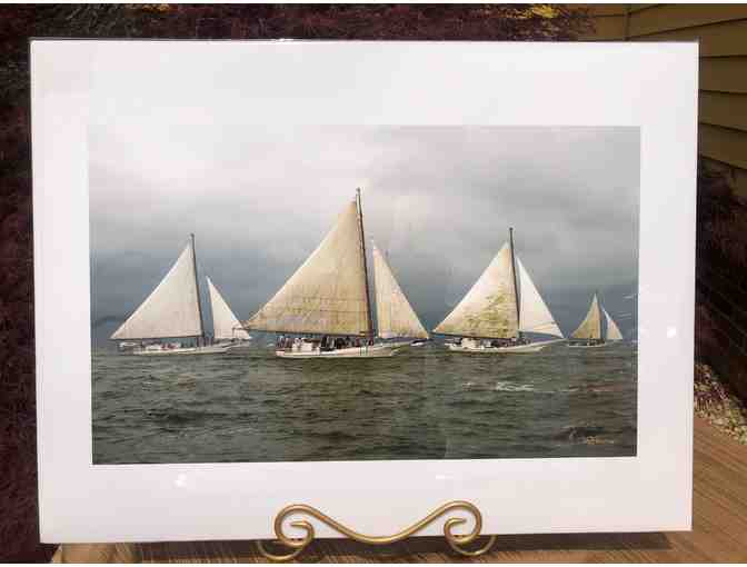 The Chesapeake Bay skipjack fleet lines up during the 2013 Skipjack races out of Deal Island as a storm approaches from the west.