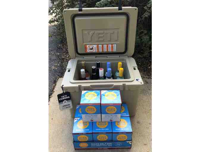 Yeti Tundra 35 Cooler stocked with Seltzers, Wine, & Spirits