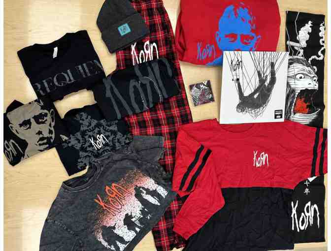 This basket includes an assortment of Korn Swag, including: shirts, "The Nothing" Korn Album, pajamas and much more!