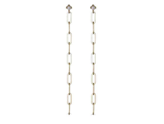 Paperclip chain link earring with single cut diamond post. Set in 14k yellow gold.