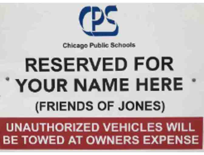 One (1) Jones College Prep reserved parking place available 24/7 with YOUR NAME on it for one year!