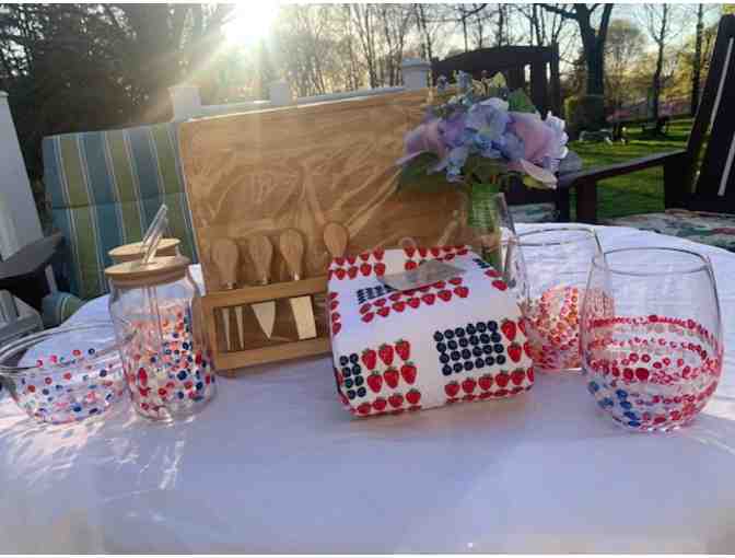 The winner of these items will receive a pitcher, bowl, a flower vase, 2 glasses, 2 mason jar glasses, a cheese board and patriot themed linens. The students of 3B created these amazing items.