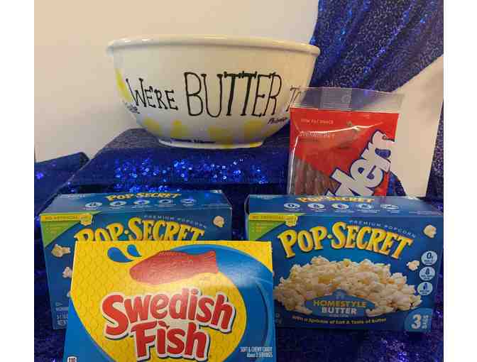 This popcorn bowl created by 1B is perfect for family movie nights!! Popcorn and candy included :)
