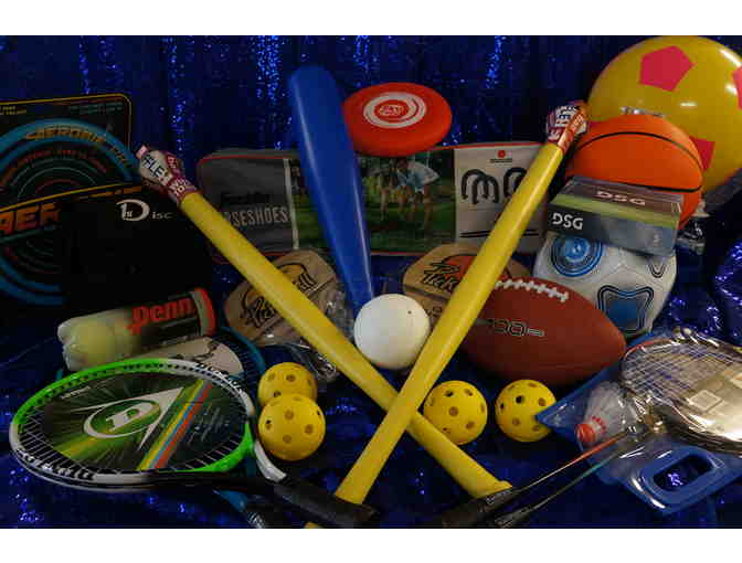 You can spend the summer playing racket sports like pickleball, badminton, or tennis with the contents of this basket. You will also enjoy Frisbee golf, horseshoes, soccer, basketball and much more!