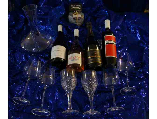 The winner of this basket will enjoy a bottle of Whitehaven Sauvignon Blanc, MVY Rose, Mumm Napa Brut and Troublemaker Red Blend. In addition, the basket contains 2 red wine glasses, 2 white wine glasses, 2 plastic wine glasses, a wine opener, a decanter and a $20 gift card to Bacon’s Wine and Spirits.