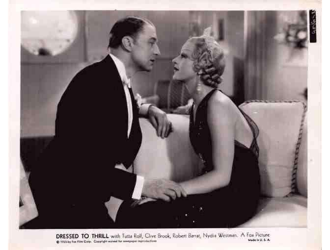 Dressed to Thrill, the 1935 Harry Lachman romantic musical starring Tutta Rolf, Clive Brook, Robert Barrat, Nydia Westman, Dina Smirnova, George Hassell and G. P. Huntley.