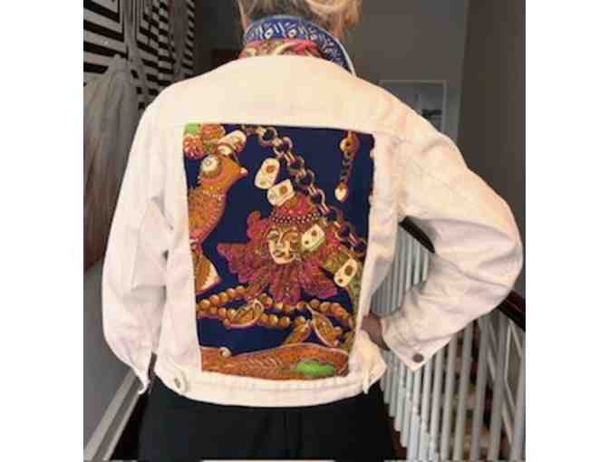 Hermes Scarf Embellished Jean Jacket designed by our Board President.