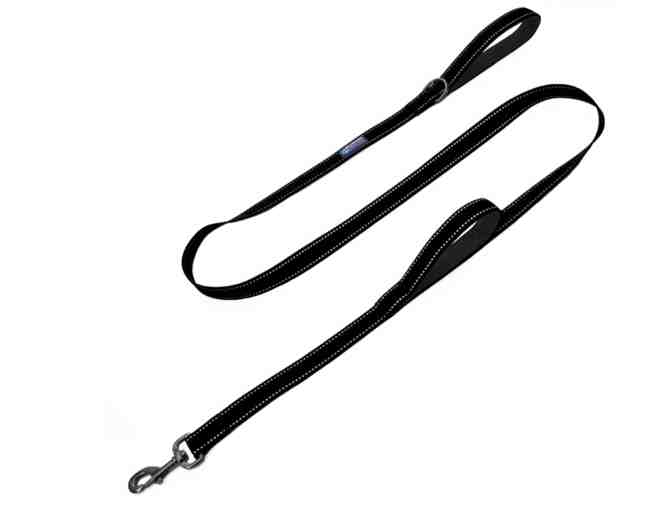 The Max and Neo Double Handle Dog Leash has an extra padded traffic handle at 18". Made with a 2mm thick nylon webbing, this leash can accommodate the largest breed dog. It is thick and strong, yet comfortable for the handler.