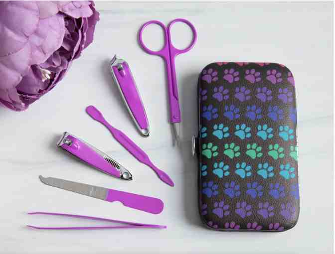 Tucked into your purse or weekend duffel bag, this travel manicure set features a colorful design on a faux leather case! Complete with an array of essential nail care tools, this manicure set includes nail clippers, nail scissors, tweezers, a file, and a cuticle pusher to handle anything that comes your way.