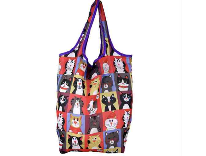 Shopping just got a whole lot cuter. Our nylon grocery bags tote more than your purchases, with kitty portraits causing waves of smiles wherever you go. Conveniently folds into compact pouch for storage in your purse or car.
