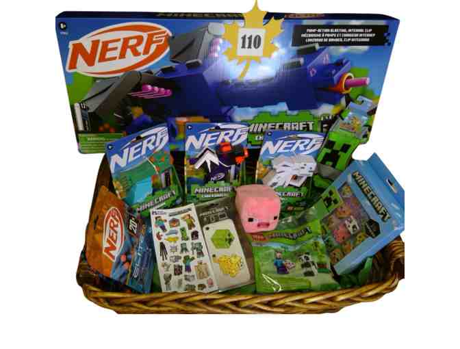 The always-popular Minecraft has returned to this year's auction! This basket contains a mega Nerf Gun, and a set of three Minecraft mini Nerf guns (for the other guys), and extra Nerf darts. Plus there's a Lego Minecraft Steve & Baby Panda set, and a Minecraft Pig Plush. As a finishing touch, we've added Minecraft decals & stickers, Minecraft socks and even Minecraft erasers!