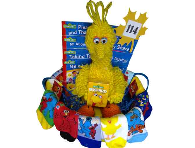 Big Bird is ready for fun with your little guy or gal in this cute basket complete with 14 pairs of Sesame Street socks, 8 books about good manners and look at the deck of cards in Big Birds hands!