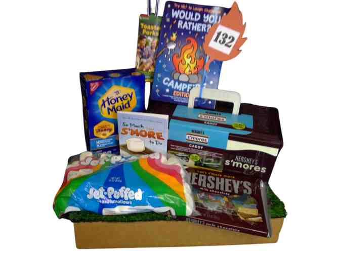 If you love S'mores you will love this basket! We start you out with two books about camping...Would You Rather Campfire and So Much Smore to Do Cookbook. To this we added Hershey Chocolate bars, large Jet Puffed Marshmallows, Honey Maid Graham Crackers, a Glow in the Dark Smores caddy and 4 Marshmallow roasting sticks. Now you're ready for fun!