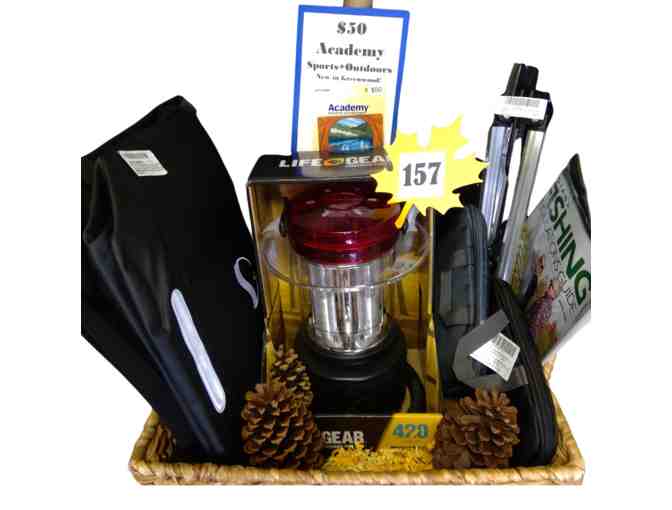 This basket is full of great outdoor gear starting with a waterproof backpack dry bag, 2 Zooron hiking backpacks (black & gray), a Fishing Pole Homer, a Life Gear Lantern and a $50 gift card to Academy Sports & Outdoor that's new to the Greenwood area.