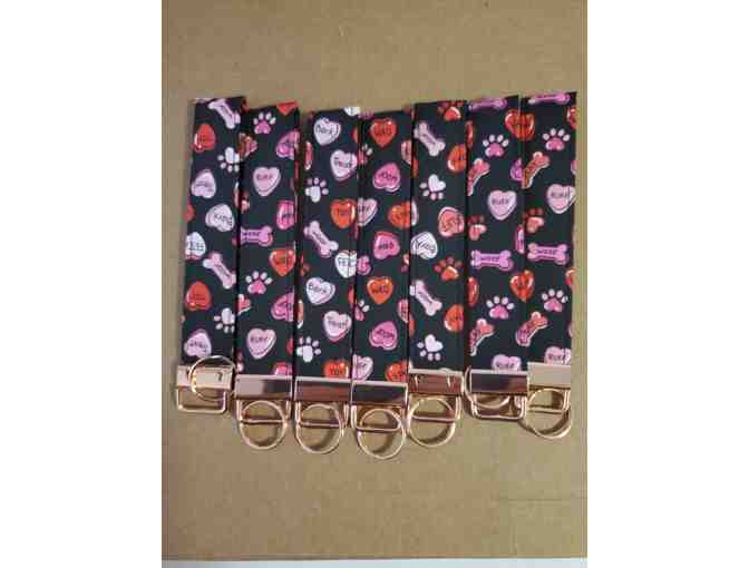 Very adorable key chain 6" long and 1" wide. Nicely made, great gift or for yourself. Dog bones and hearts on black background. New. Shipping included.