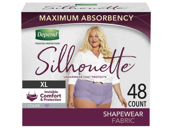 54235-00 Depend Silhouette Adult Incontinence and Postpartum Underwear for Women, Extra-Large (50–60" Waist), Maximum Absorbency, Purple, 48 Count (2 Packs of 24)