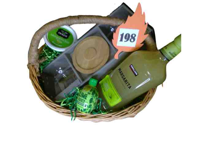 We are all ready to travel to Margarita Ville with this basket. We started with thi awesome set of margarita glasses and wooden salt holder. With such an great set we had to add a bottle of Margarita ready to drin lime juice and salt. All you need to add is a Jimmy Buffet song.