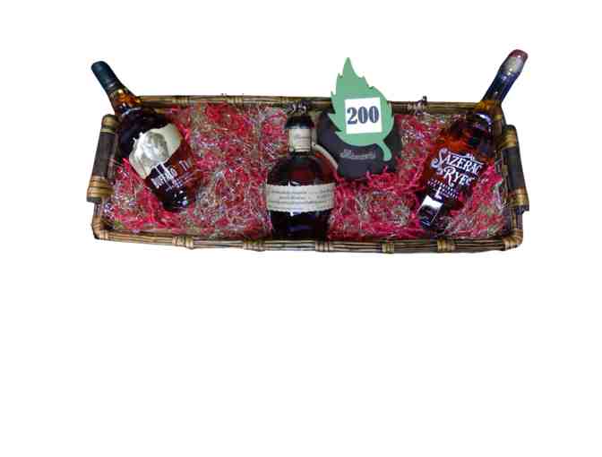 Here we feature three bottles of Kentucky's finest Bourbons & Whiskeys. We have a bottle of Buffalo Trace, a bottle of Blantons (letter "A" with bag & the box is folded below) and last but surely not the least, a bottle of Sazerac Straight Rye Whiskey.