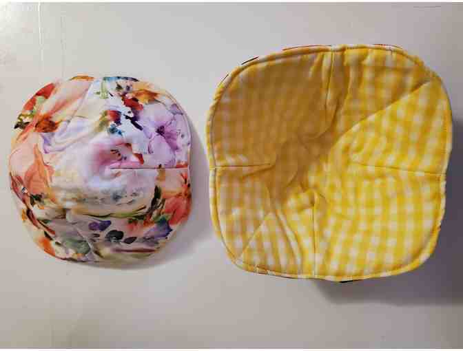 Pair (2) Yellow/white checkered inside with pastel floral outside with