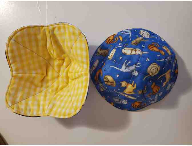 Pair (2) Yellow/white checkered inside with multi cat on blue background outside